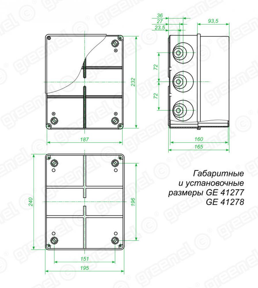 Для изолирования точек отвода электропроводов, электрокабеля сетей освещения и энергосиловых сетей, напряжением до 1000В переменного и постоянного тока, а также кабелей информационных сетей (телефонных, компьютерных, сетей связи и пр.) Для установки приборов учета, контроля, распределения электроэнергии. Коробки используются при открытом монтаже электропроводки. Предусмотрена возможность монтажа с жесткими трубами диаметром до 50мм.