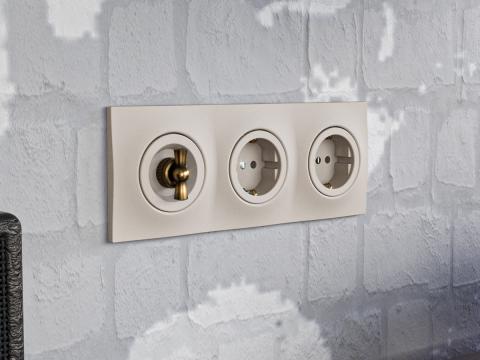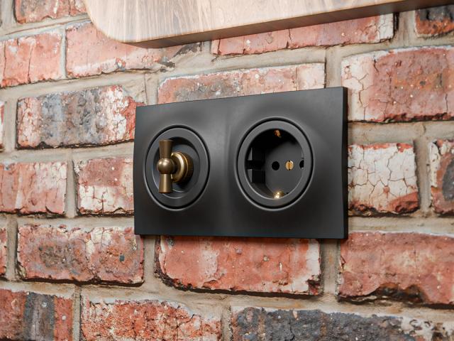Механизмы поворотного типа подчёркивают эстетику стиля «винтаж модерн» и выдерживают нагрузку до 10 А, 250 В.